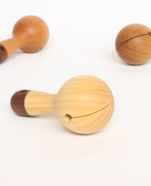 ふくふくらとる 色々な樹種のちょっと小さな材料を使って製作され たまんまるなカタチのラトルです。 中には宝来鈴といって「宝」が寄ってくるという 鈴が入っており、振ると優しい音がします。 赤ちゃんが舐めても大丈夫な塗装。 紐の通し穴もあるので外に持ち出す時も安心です。 小さい頃の思い出がずっと心に残りますように。 その時々で製作に使う材料が異なります。