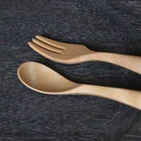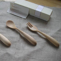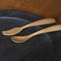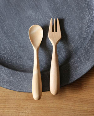 コドモカトラリ 子供にとって安心、安全なもの。 何が大切かということを考えて出来上がったカトラ リです。 子供用だからといって妥協せず、持ちやすく、使い たくなるようなカトラリを目指しました。 塗装は胡桃油を主体としたオイルです。 手触りが良く、口に入れるものとして最適に仕上げ ました。
