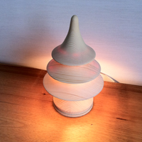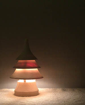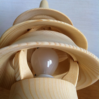 灯樹色(つりぃ) 雪国を彷彿とさせる白い肌の優しいかたち すきまからこぼれ落ちるあかりが周囲の空間を彩る 名前は「つりぃ」、樹の色を灯す照明。 道産のトドマツを使い、丁寧に加工された表面はな だらかな曲面を描き、針葉樹の形をつくります。 材によって透け方が異なり、それぞれに違った表情 を見せる。 「工房 灯のたね」により造られた最初の灯り。